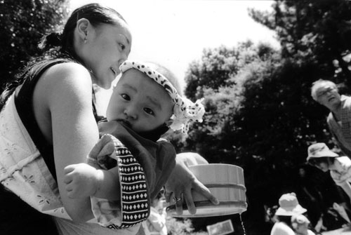 「母と子」 廣瀬真也さん (日時:8/18(水)正午頃/場所:新宿区 国立競技場前) 奈良原一高審査委員長よりコメント: 非常にかわいい写真。ねじり鉢巻もよく似合い、来年は自分が打ち水をやってやろ うという雰囲気で、打ち水の未来を感じさせる。
