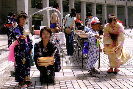 「水の軌跡」 田中玲さん (日時:8/18(水)正午頃/場所:新宿区 都庁前都民広場) 尾田栄章打ち水大作戦本部長よりコメント: 水の動きに注目。放物線がどうやったらこんな軌道になるのか不思議。いや、ほんとうに不思議。田中さんはずっと水の軌跡を追っておられたようだが、これは傑作。