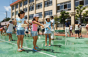 中央大学理工学部山田教授の分析(速報)によると、「第一寺島小学校の校庭では、打ち水の効果が最もよく出たところで、気温(地上1.5m)が約1.8℃下がりました。また、地蔵坂通り商店街などでは、0.4-1.4℃の気温低下がありました。」、「熱画像による温度観測では、打ち水前に約50℃であったグラウンド(地表面)が、打ち水直後に41.6℃になり、さらに風が吹くと40℃程度に低下していました。」という結果が報告されています。